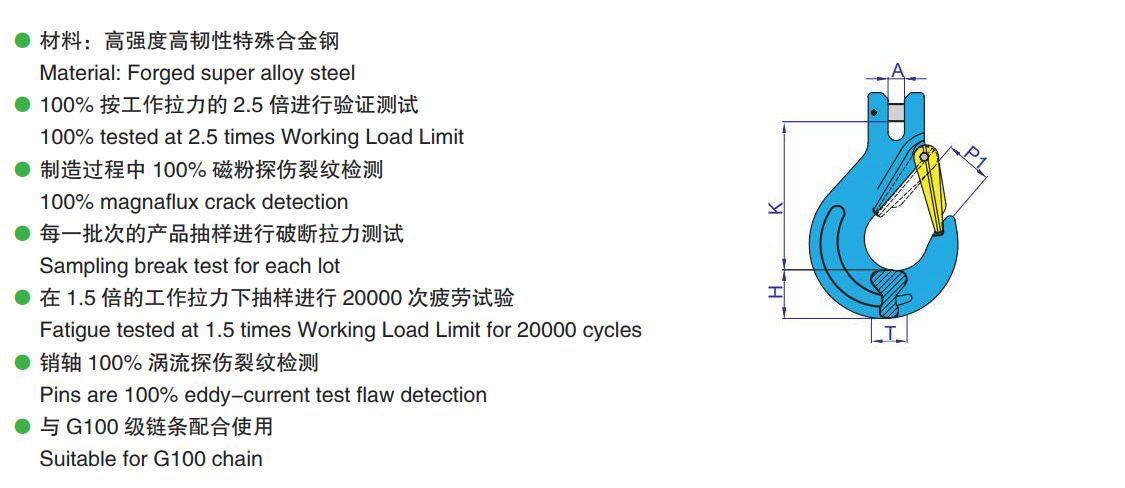 YS20 G100 NEW CLEVIS SLING HOOK WITH LATCH